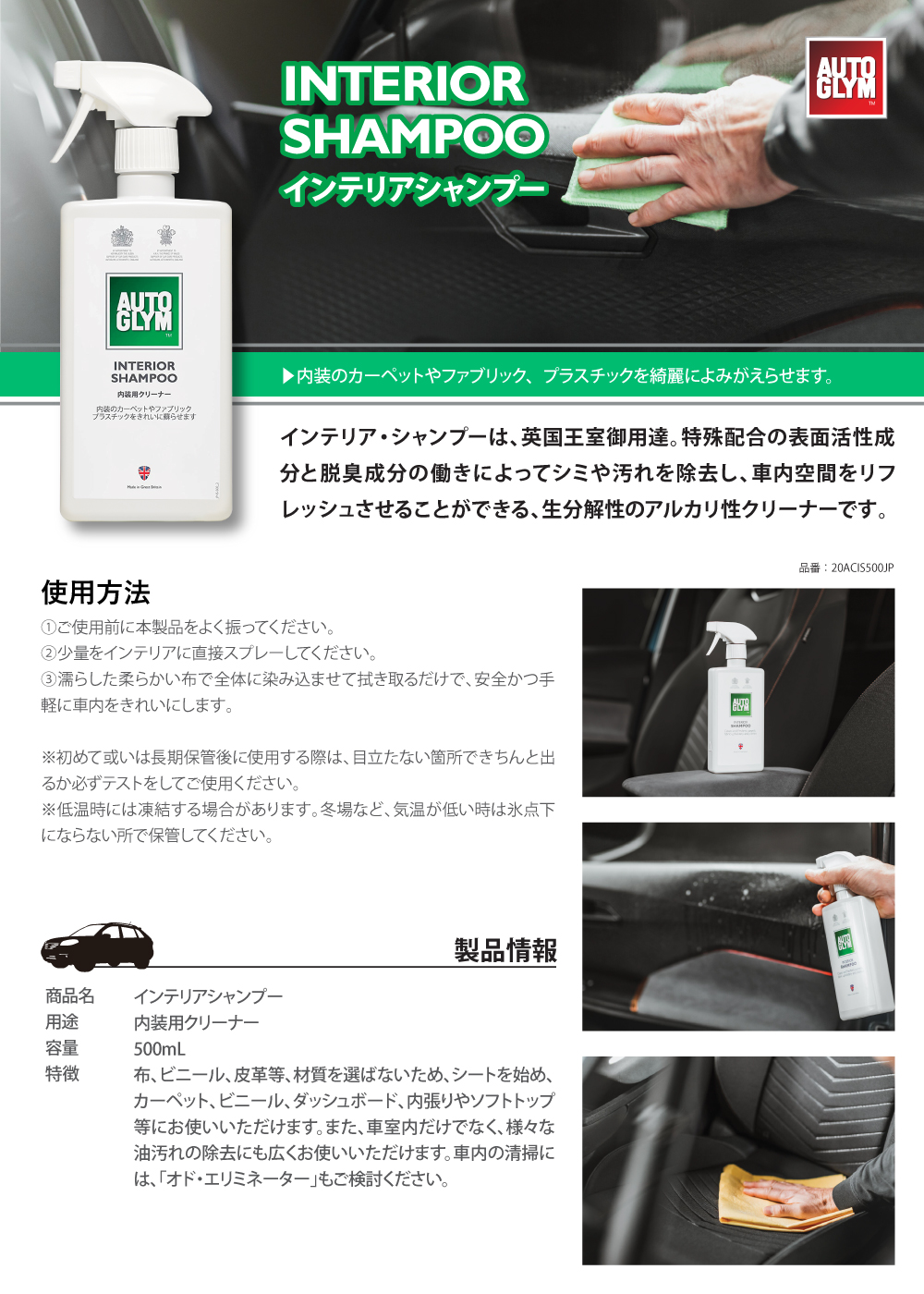 【ポイント20%還元】オートグリム 車内清掃 内装 クリーナー インテリアシャンプー カーペット ファブリックプラスチック 簡単 時短 汚れ除去 正規輸入品 20ACIS500JP AUTOGLYM 20ACIS500JP