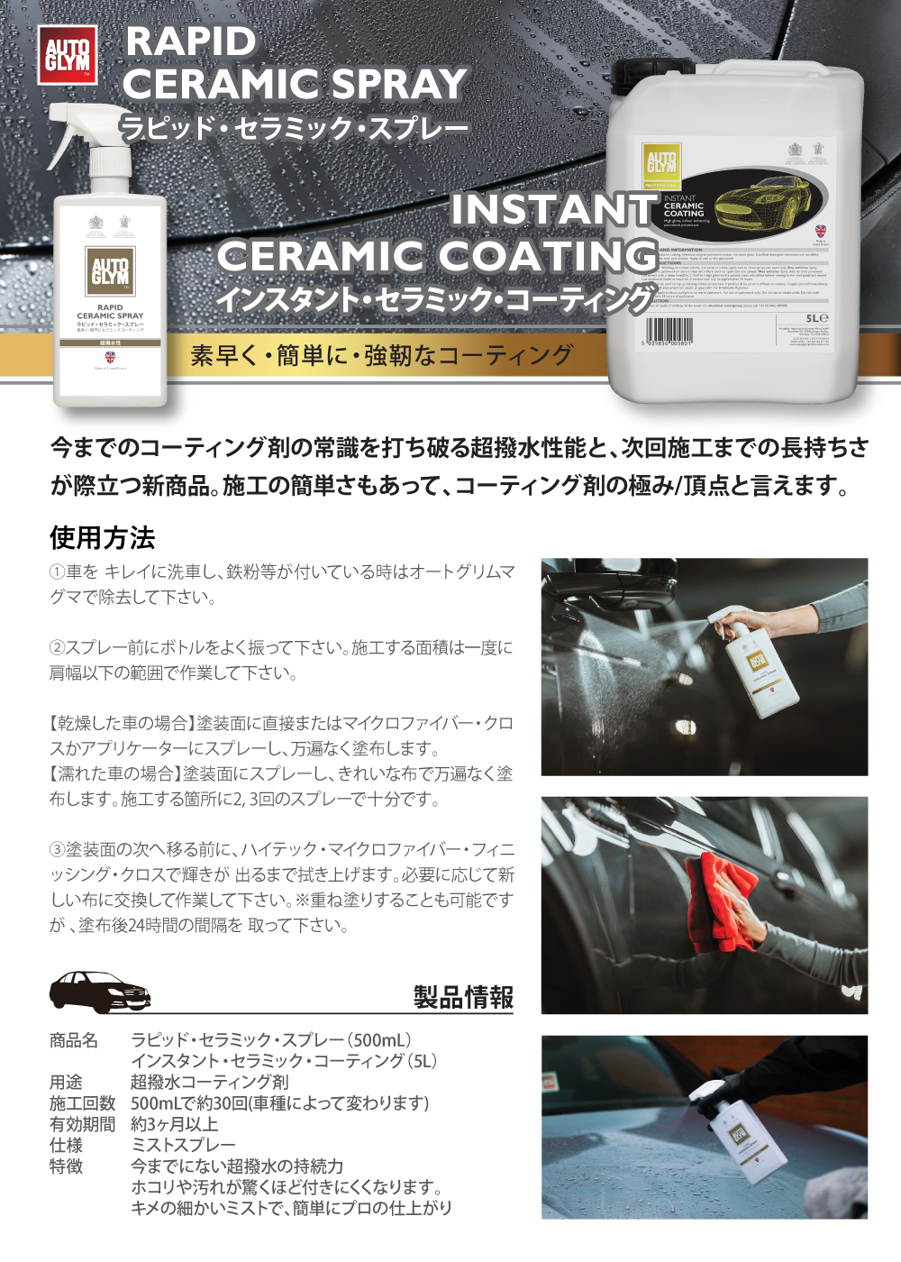 【ポイント20%還元】オートグリム インスタント・セラミック・コーティング 自動車用コーティング剤 超撥水 スプレー 3ヶ月 AUTOGLYM 20A08005JP