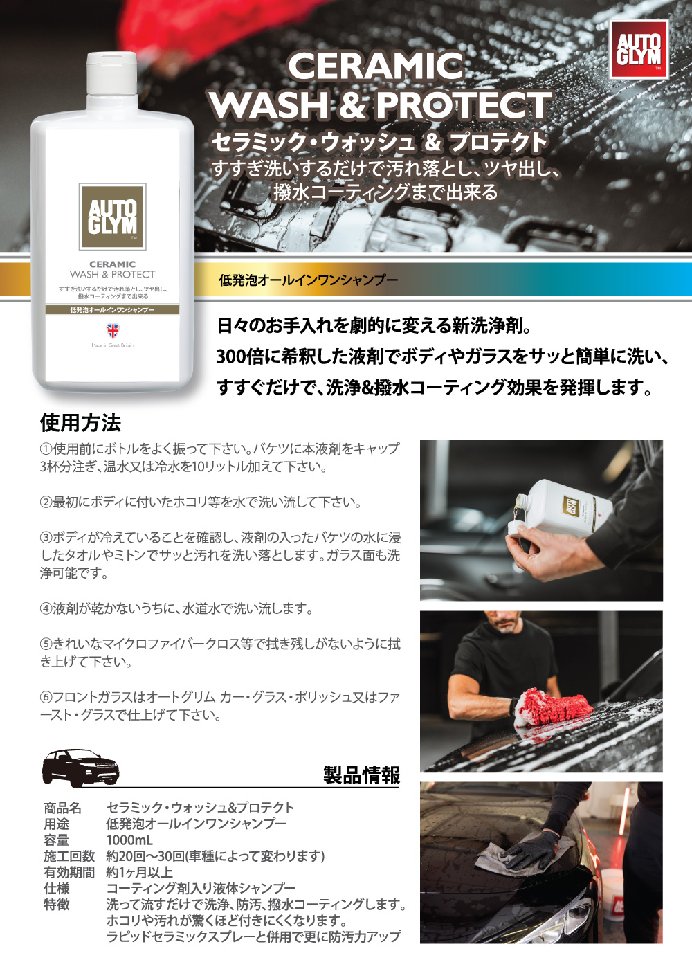 洗うだけでセラミックコーティング【ポイント20%還元】オートグリム 洗うだけでセラミックコーティング セラミックウォッシュ&プロテクト 20ACWP001JP AUTOGLYM 20ACWP001JP
