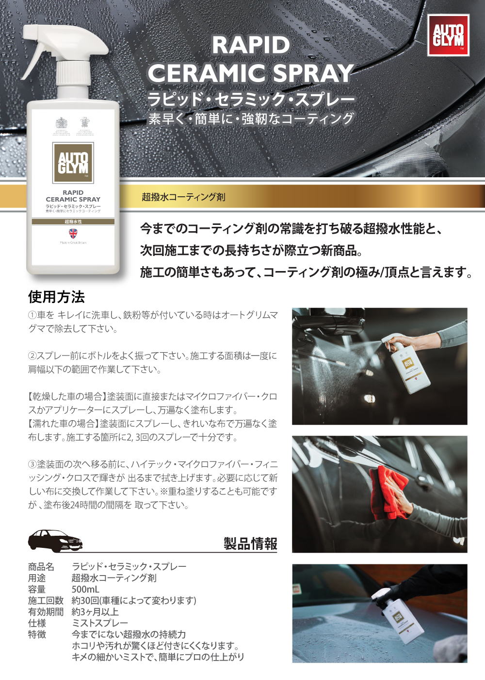自動車用コーティング剤 超撥水 スプレー【ポイント20%還元】オートグリム ラピッド・セラミック・スプレー 自動車用コーティング剤 超撥水 スプレー 3ヶ月 20ARCS500JP AUTGLYM 20ARCS500JP