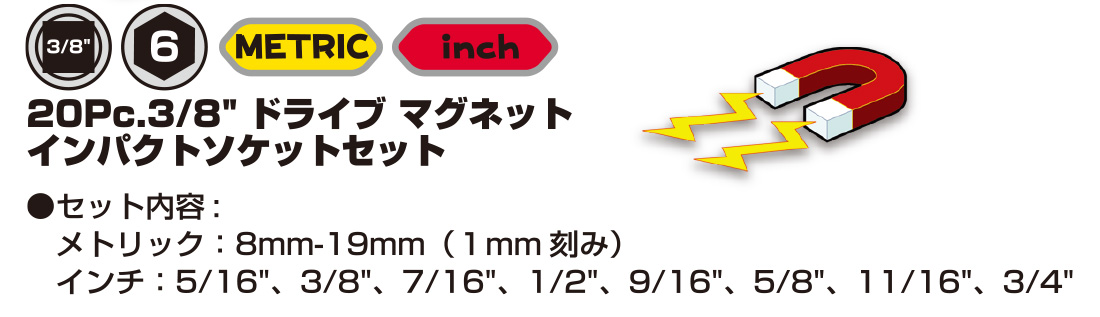 20Pc.3/8"マグネット インパクトソケットセットマックツールズ 20Pc.3/8"ドライブ マグネット インパクトソケットセット | SXMP206PT MAC TOOLS SXMP206PT