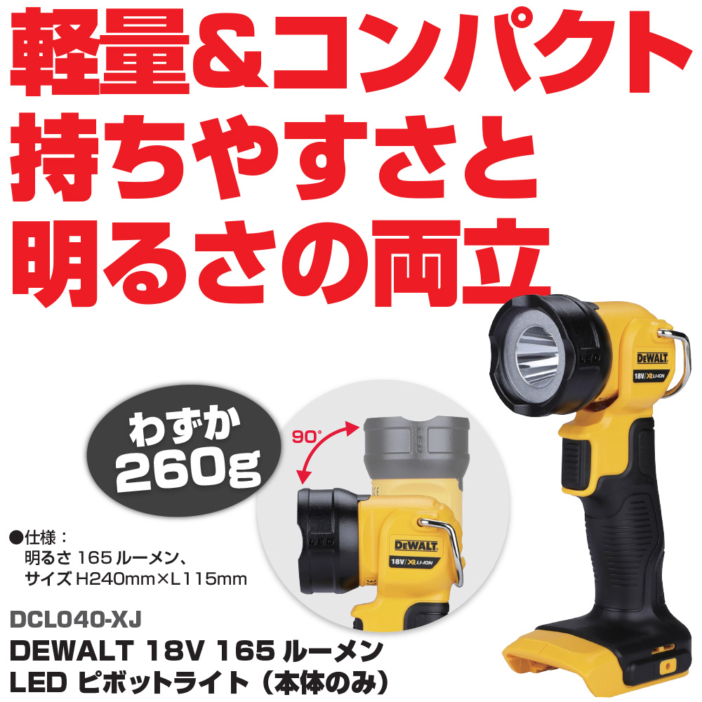 トップ > 動力工具 > デウォルト 18V LEDピボットライト(本体のみ) | DCL040-XJ DEWALT